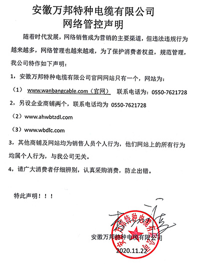 鄭重聲明:安徽萬邦特種電纜有限公司官方網站為:www_wanbangcable_com.fanghuasijin.cn,除此之外無任何子網站或合作網站,其余均為假冒偽劣。電話:0550-7621728 13485756353 地 址:安徽省天長市滁州高新技術產業開發區經四路29號